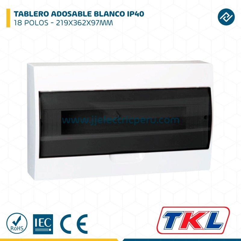 El tablero adosable blanco IP40 de 18 polos TKL Electric está diseñado para redes de distribución eléctrica de baja tensión, ofreciendo seguridad, resistencia y una instalación eficiente en todo tipo de entornos residenciales, comerciales o industriales.