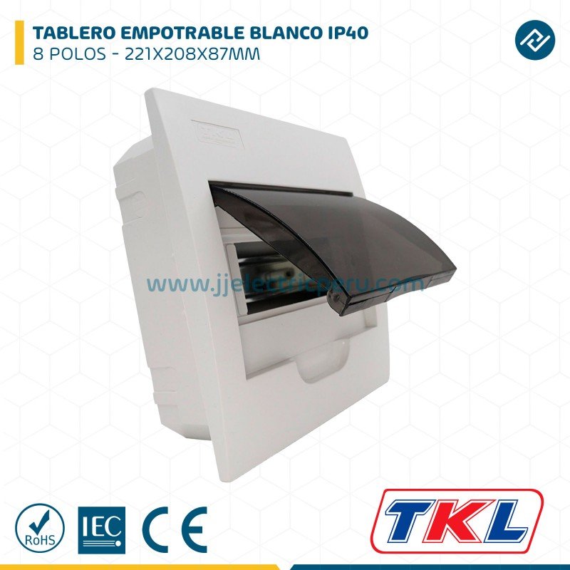 El tablero empotrable blanco IP40 de 8 polos TKL Electric está diseñado para garantizar una distribución eléctrica segura, ordenada y confiable en sistemas de baja tensión.