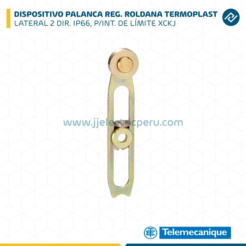 El dispositivo de palanca regulable con roldana termoplástica lateral bidireccional para interruptores de límite XCKJ de Telemecanique (Schneider Electric) es un accesorio de precisión diseñado para detectar posiciones o movimientos mecánicos en máquinas y sistemas automatizados. Gracias a su diseño resistente y su grado de protección IP66, ofrece un rendimiento confiable incluso en ambientes industriales exigentes. Además, su palanca ajustable y su roldana termoplástica permiten una operación suave, adaptable y duradera.